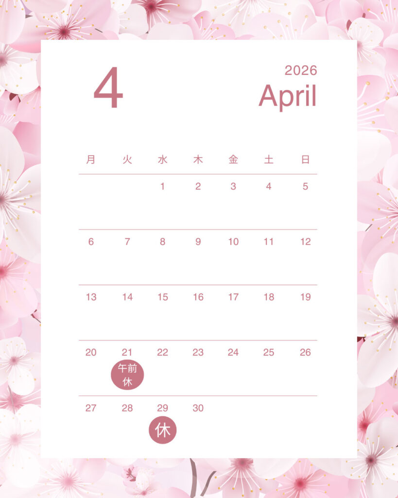 令和8年4月の休診日は29日水曜日です。